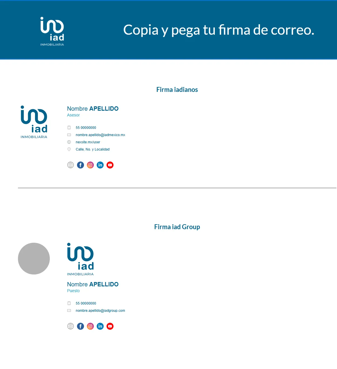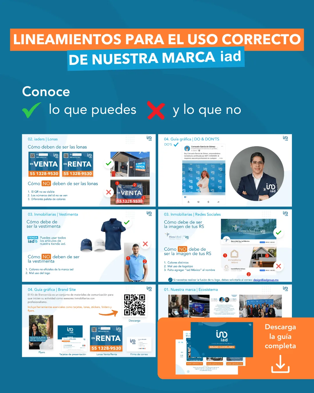 Reforzaremos nuestra marca en México. Para que el mercado nos identifique claramente como lo que somos —una inmobiliaria—, sumamos la palabra "Inmobiliaria" al logo de iad. Este ajuste ayudará a posicionarnos mejor y evitar confusiones con clientes y aliados.
